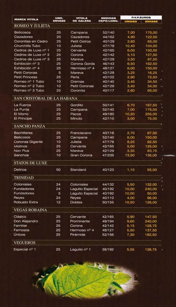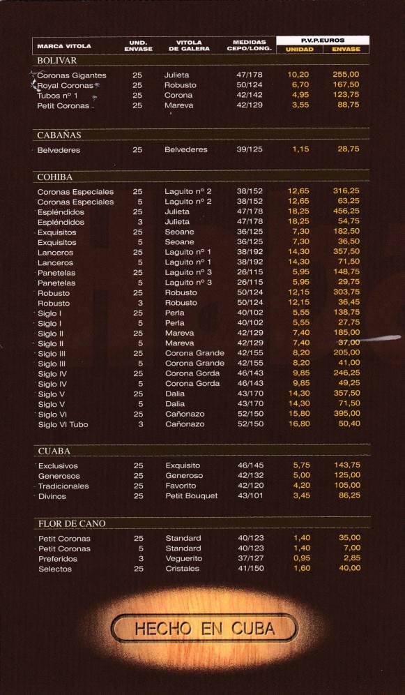 2004 Habanos Price List